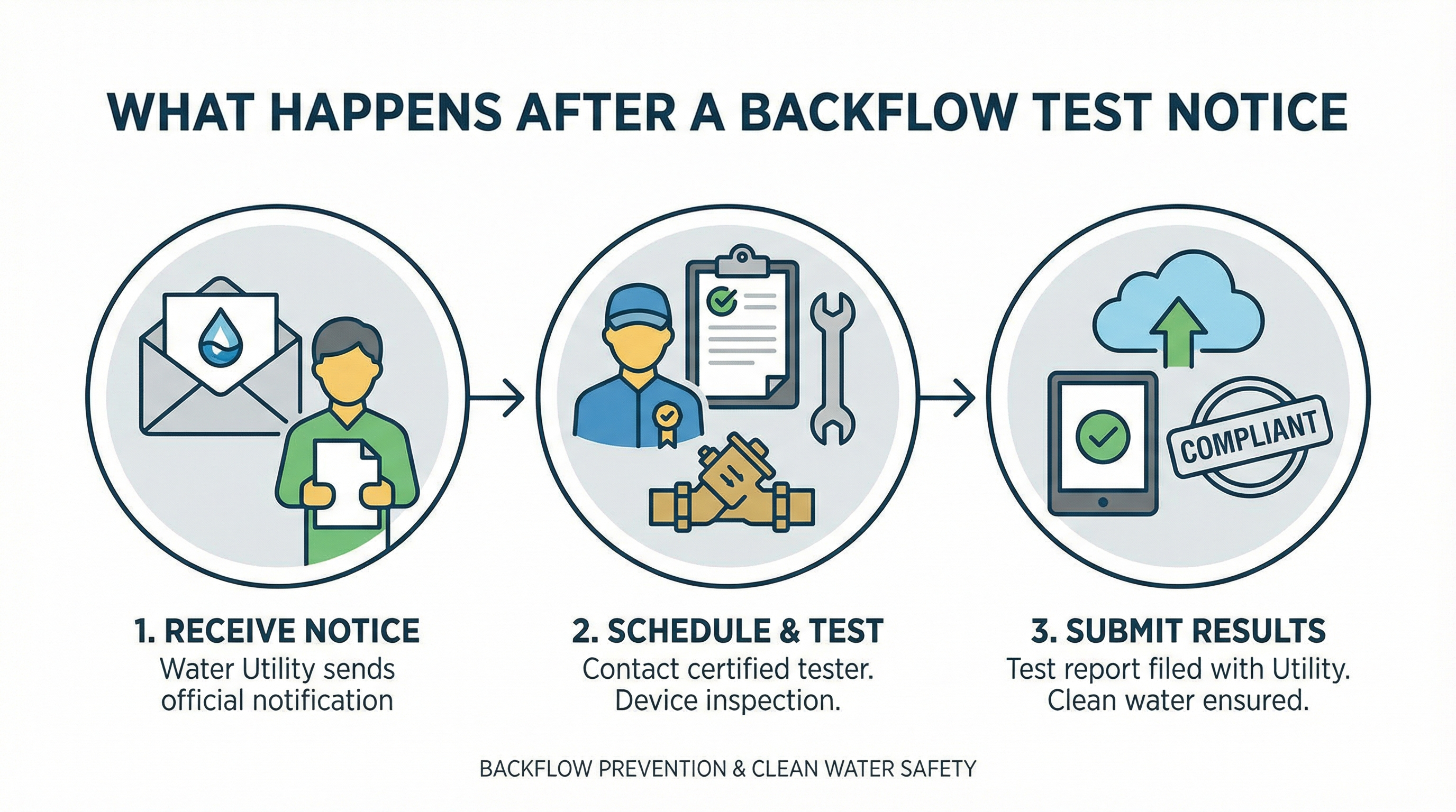 Received a backflow test notice in the mail? Here's exactly what it means, what you need to do, and how to stay compliant — step by step.