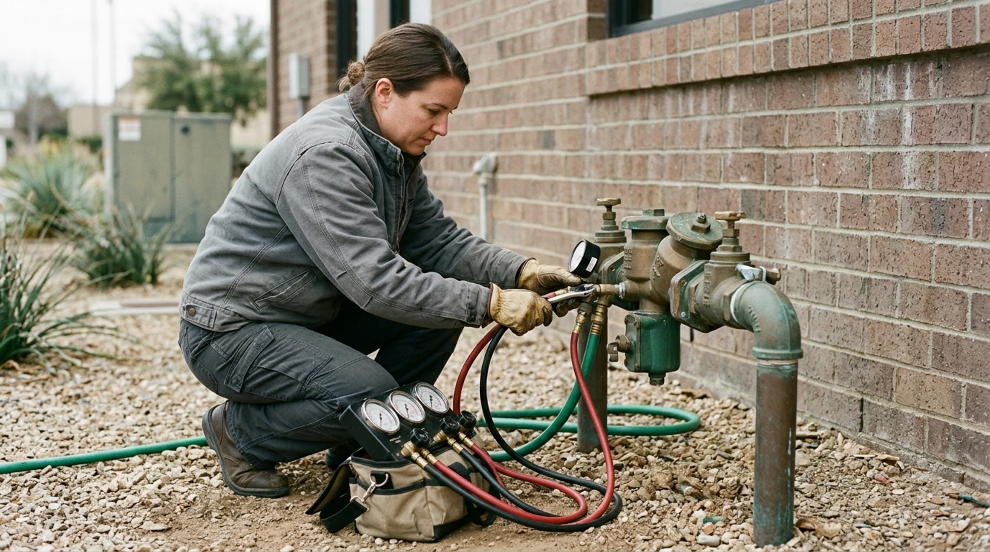 A specialized backflow tester handles the diagnostic and compliance side. They use calibrated differential pressure gauges to test whether the internal checks and relief functions are operating correctly. Then they complete the field test report your utility or local cross-connection control program may require.